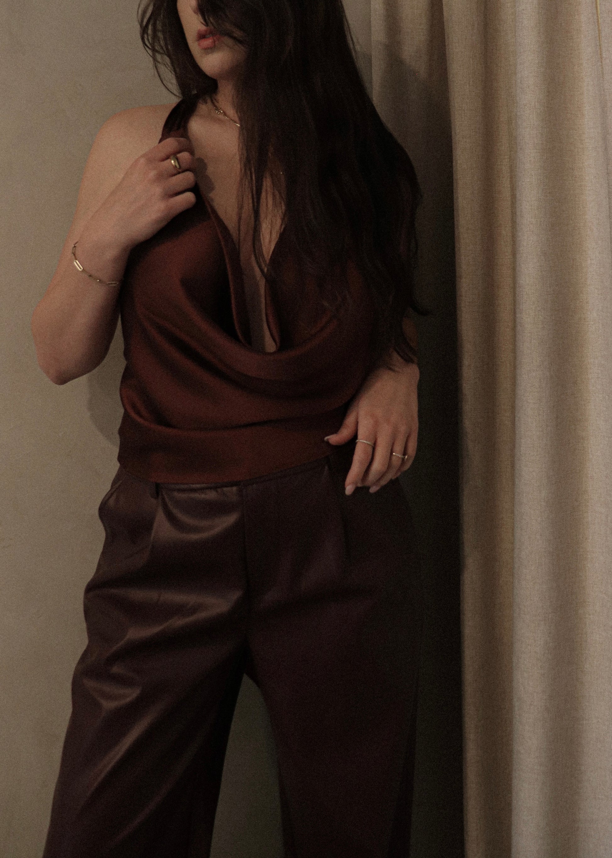 Silk Halter Top - Raisin